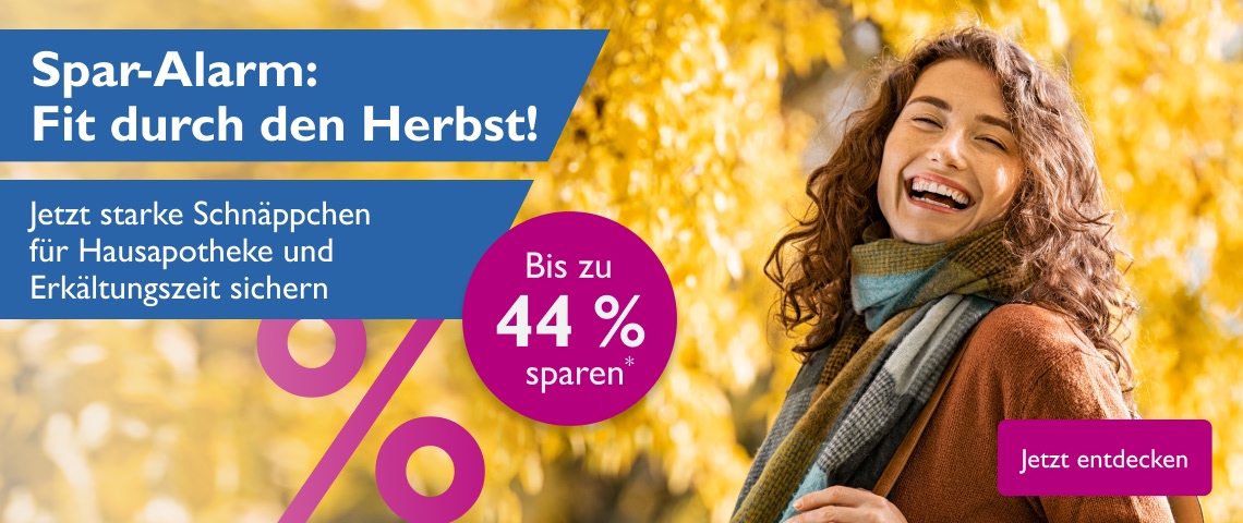 ⁷ Mit dem Gutscheincode SparmedFlash erhalten Sie im Aktionszeitraum vom 10.09.2025, 9:00 Uhr bis 11.09.2025, 9:00 Uhr bei Ihrer Bestellung zusätzlich 10% Rabatt ab einem Mindestbestellwert von 59€. Nicht anwendbar auf rezeptpflichtige Artikel, Bücher und Versandkosten sowie bei Bestellungen über Vergleichsportale. Nicht mit anderen Aktionsvorteilen kombinierbar und nur einzulösen unter www.sparmed.de. Nach Eingabe des Gutscheincodes im Warenkorb, wird der Wert des Vorteils automatisch vom Rechnungsbetrag abgezogen. Wir behalten uns das Recht vor, die Aktionen bei Vorliegen eines wichtigen Grundes zu beenden oder ggf. mit einem anderen Gutschein bzw. durch eine andere Aktion zu ersetzen.