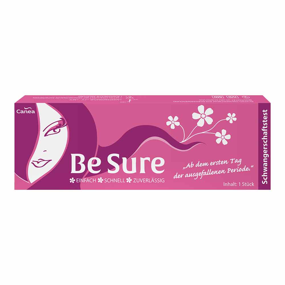 Be Sure ist ein einfacher, ablesbarer Schwangerschaftstest, der zuverlässig funktioniert. Ab dem ersten Tag der fälligen Periode, kann er zu jederzeit angewendet werden.