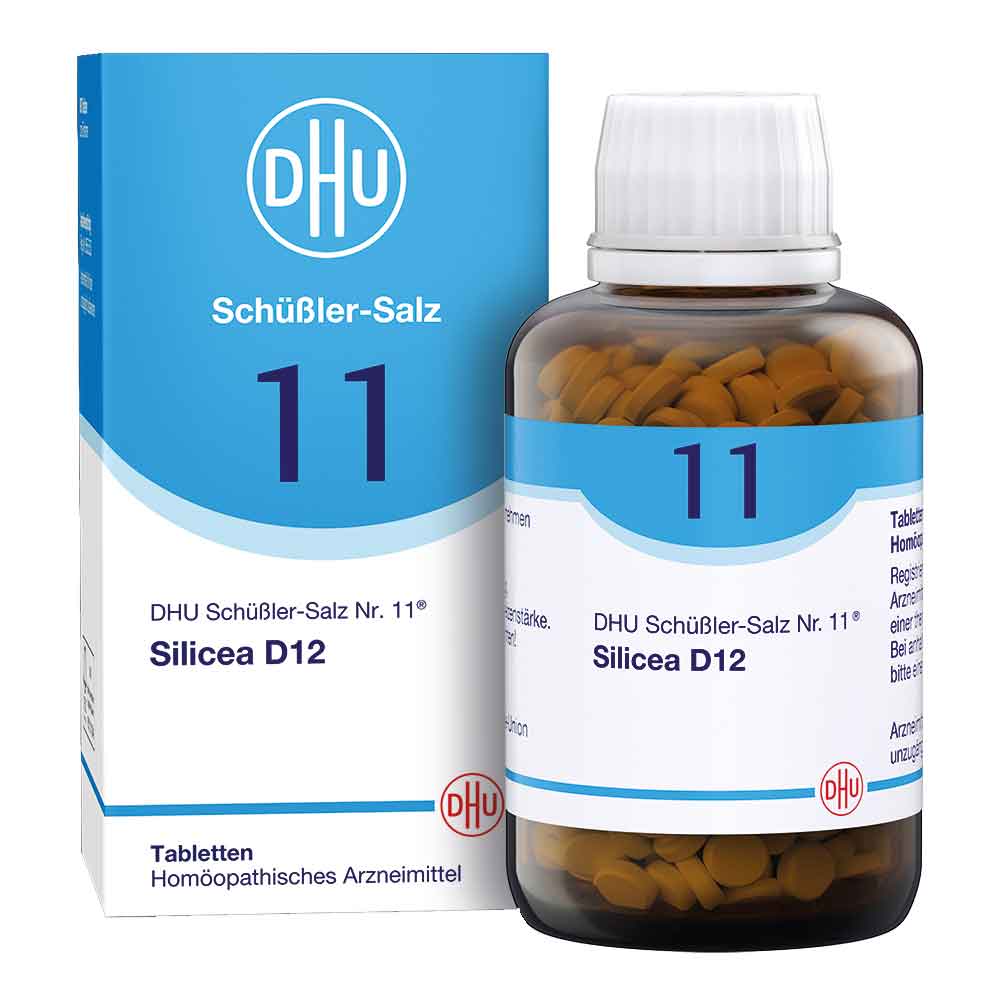 DHU Schüßler-Salz Nr. 11® Silicea D12 Anwendungsgebiete: Registriertes homöopathisches Arzneimittel, daher ohne Angabe einer therapeutischen Indikation. Zu Risiken und Nebenwirkungen lesen Sie die Packungsbeilage und fragen Sie Ihre Ärztin, Ihren Arzt oder in Ihrer Apotheke. Enthält Lactose und Weizenstärke. Packungsbeilage beachten! Deutsche Homöopathie-Union DHU-Arzneimittel GmbH & Co. KG, Karlsruhe
