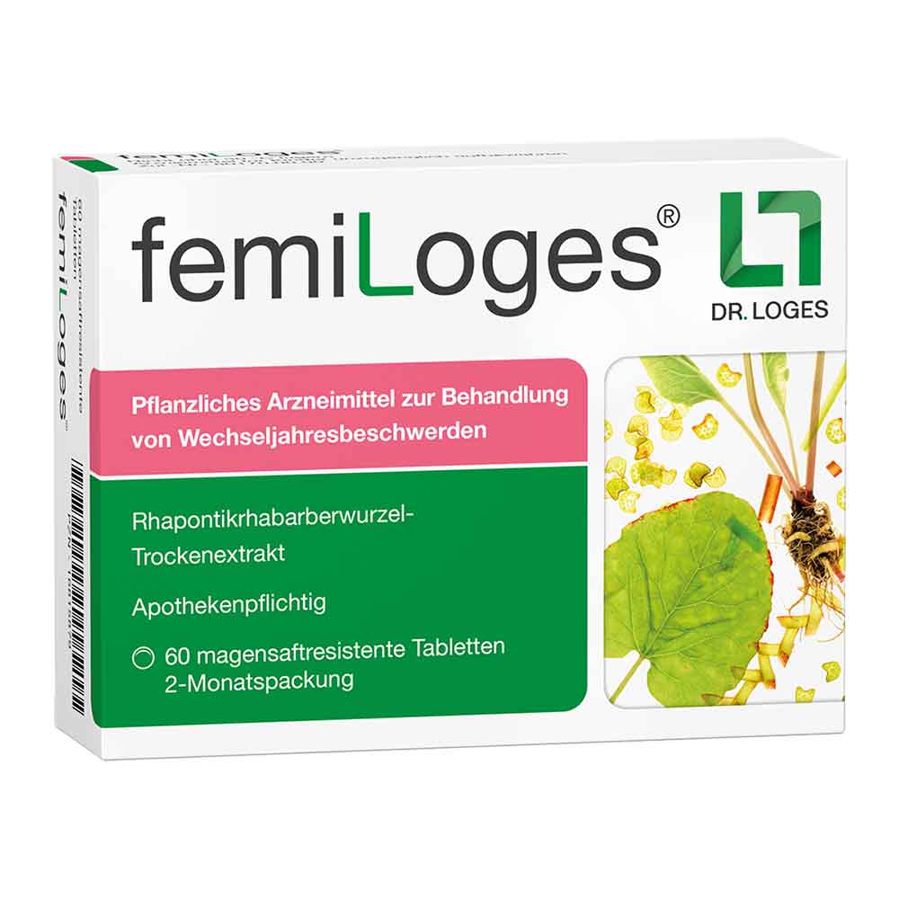 femiLoges®, Wirkstoff: Rhapontikrhabarberwurzel-Trockenextrakt. femiLoges® wird angewendet zur Besserung der durch die Wechseljahre bedingten psychischen und neurovegetativen Beschwerden wie Hitzewallungen/Schweißausbrüche, Schlafstörungen, depressive Verstimmungen und Ängstlichkeit. Warnhinweise: Enthält Lactose und Saccharose. Gegenanzeigen: Bestehen oder Verdacht auf einen östrogenabhängigen Tumor, da nicht bekannt ist, ob Rhapontikrhabarberwurzel-Trockenextrakt das Wachstum eines östrogenabhängigen Tumors beeinflusst. Zu Risiken und Nebenwirkungen lesen Sie die Packungsbeilage und fragen Sie Ihre Ärztin, Ihren Arzt oder in Ihrer Apotheke. Stand: 11/2023