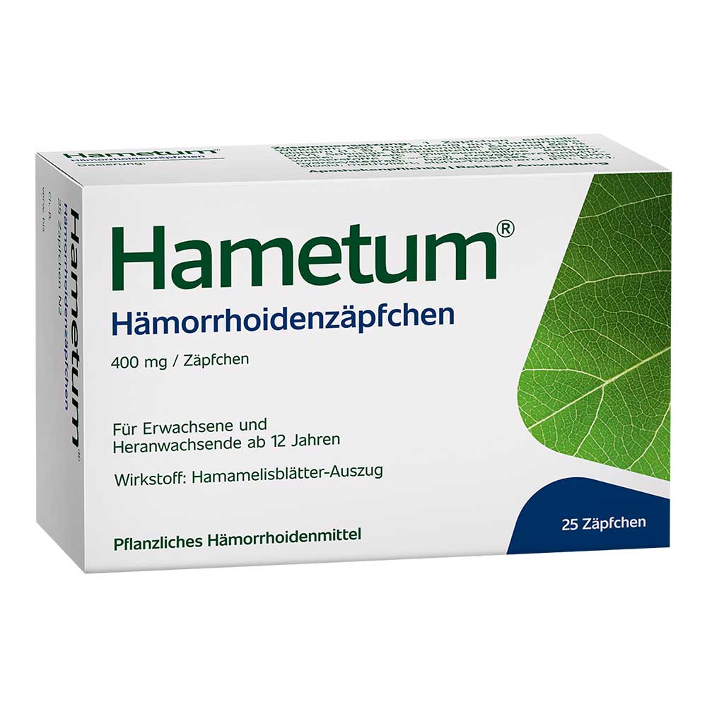 Hametum® Hämorrhoidenzäpfchen. Wirkstoff: Hamamelisblätter-Auszug. Bei Juckreiz, Nässen und Brennen in den Anfangsstadien von Hämorrhoidalleiden. Zu Risiken und Nebenwirkungen lesen Sie die Packungsbeilage und fragen Sie Ihre Ärztin, Ihren Arzt oder in Ihrer Apotheke. Dr. Willmar Schwabe GmbH & Co. KG - Karlsruhe