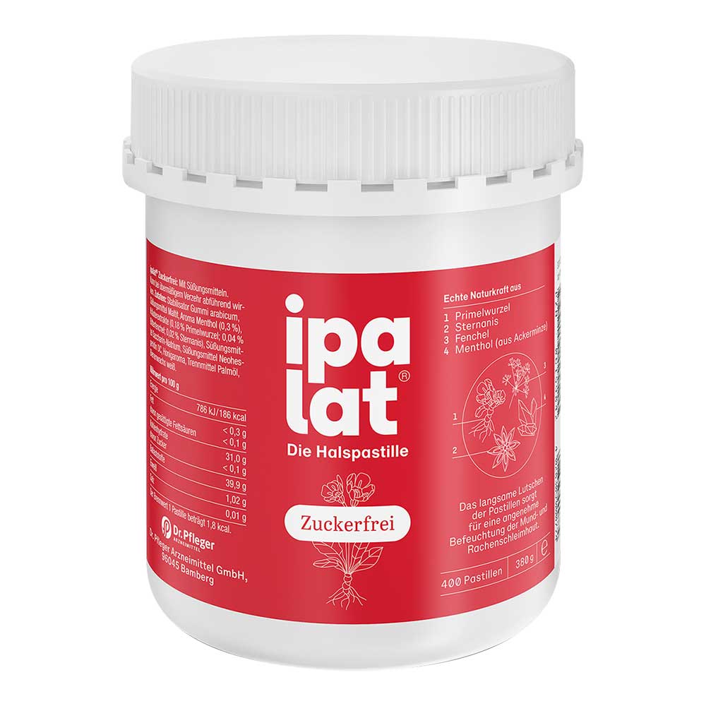 Ipalat zuckerfrei verbindet die wohltuende echte Naturkraft der Primelwurzel mit dem angenehmen Geschmack aus der einzigartigen Zubereitung mit Anis und Fenchel. Beim Lutschen der Pastille bildet sich ein wohltuender Film im Rachen. Ipalat Zuckerfrei ist Balsam für den Hals.