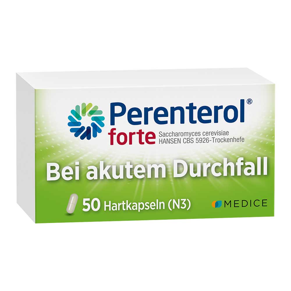 Perenterol® forte 250 mg Kapseln. Wirkstoff: Trockenhefe aus Saccharomyces cerevisiae HANSEN CBS 5926 (Synonym: Saccharomyces boulardii). Anwendungsgebiete: Zur Behandlung der Beschwerden bei akuten Durchfallerkrankungen, zur Vorbeugung und Behandlung der Beschwerden von Reisedurchfällen sowie Durchfällen unter Sondenernährung. Zur begleitenden Behandlung bei länger bestehenden Formen der Akne. Für Erwachsene und Kinder ab 2 Jahren. Warnhinweis: Enthält Lactose. Zu Risiken und Nebenwirkungen lesen Sie die Packungsbeilage und fragen Sie Ihre Ärztin, Ihren Arzt oder in Ihrer Apotheke.Stand: 08/2024. MEDICE Arzneimittel, 58638 Iserlohn.
